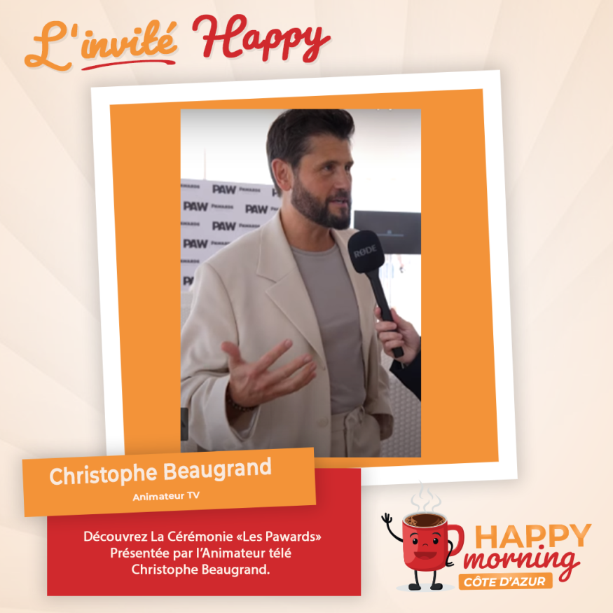 Dans l'émission happy morning Côte d'Azur, Loric reçoit l'Animateur de TF1 Christophe Beaugrand lors de sa venue à Cannes pour les PAWARDS. Présentation et questions / réponses sont au programme de cet interview.