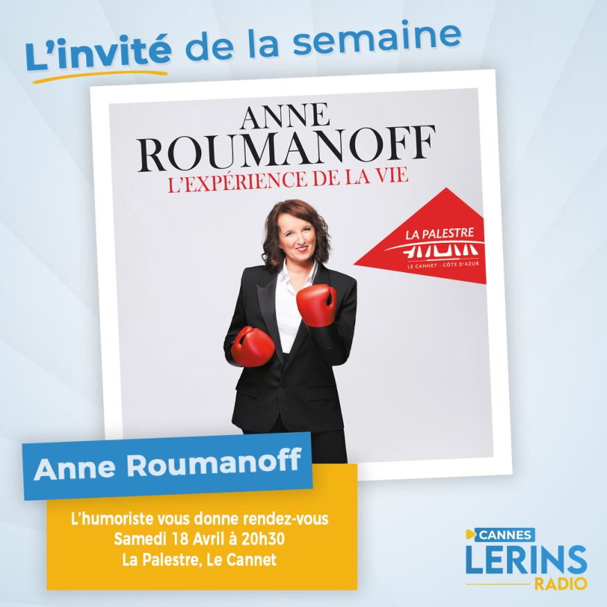 Dans l'émission l'invité de la semaine, Loric reçoit l'Humoriste Anne Roumanoff qui nous parle de ses débuts et de son dernier spectacle "L'expérience de la vie" qu'elle jouera le samedi 18 avril à 20h30 à la Palestre le Cannet. Présentation et questions / réponses sont au programme de cet interview.