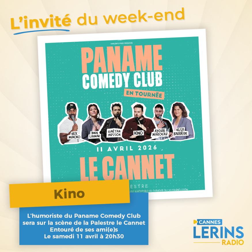 Dans l'émission l'invité du week-end, Loric reçoit l'humoriste Kino du Paname Comédy Club entouré des autres humoristes : AYOUB MARCEAU, ELSA BARRÈRE, IMEN LAHMAR, NICK MUKOKO & GAETAN HUSSON. Kino vous donne rendez-vous le samedi 11 avril à 20h30 à la Palestre le Cannet pour rire rire et encore rire. Présentation et questions / réponses sont au programme de cet interview.