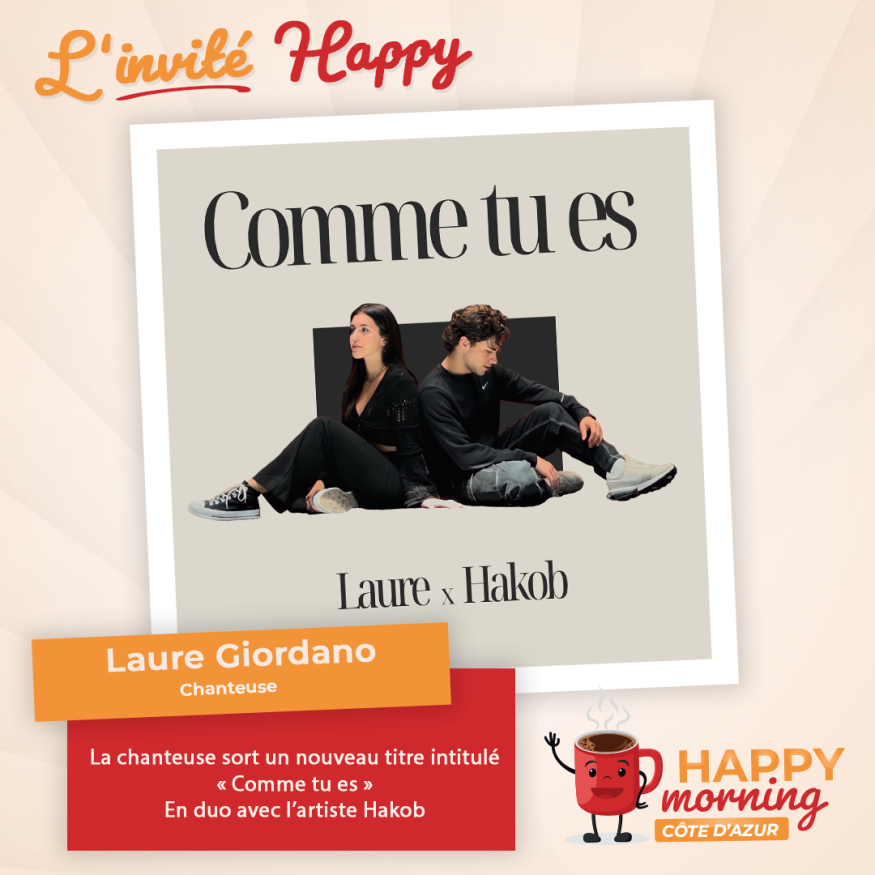 Dans l'émission happy morning Côte d'Azur, Loric reçoit lla Chanteuse Laure Giordano pou son nouveau intitulé "COMME TU ES" en duo avec le Chanteur HAKOB. Présentation et questions / réponses sont au programme de cet interview.
