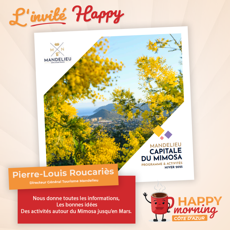 Dans l'émission happy morning Côte d'Azur, Loric reçoit Pierre-Louis Roucaries Directeur Général du Tourisme à Mandelieu-La-Napoule. Présentation et questions / réponses sont au programme de cet interview.