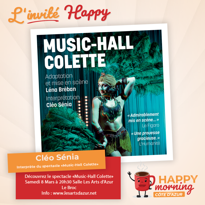 Dans l'émission happy morning Côte d'Azur, Loric reçoit l'artiste Cléo Sénia du "Music-Hall Colette". Présentation et questions / réponses sont au programme de cet interview.