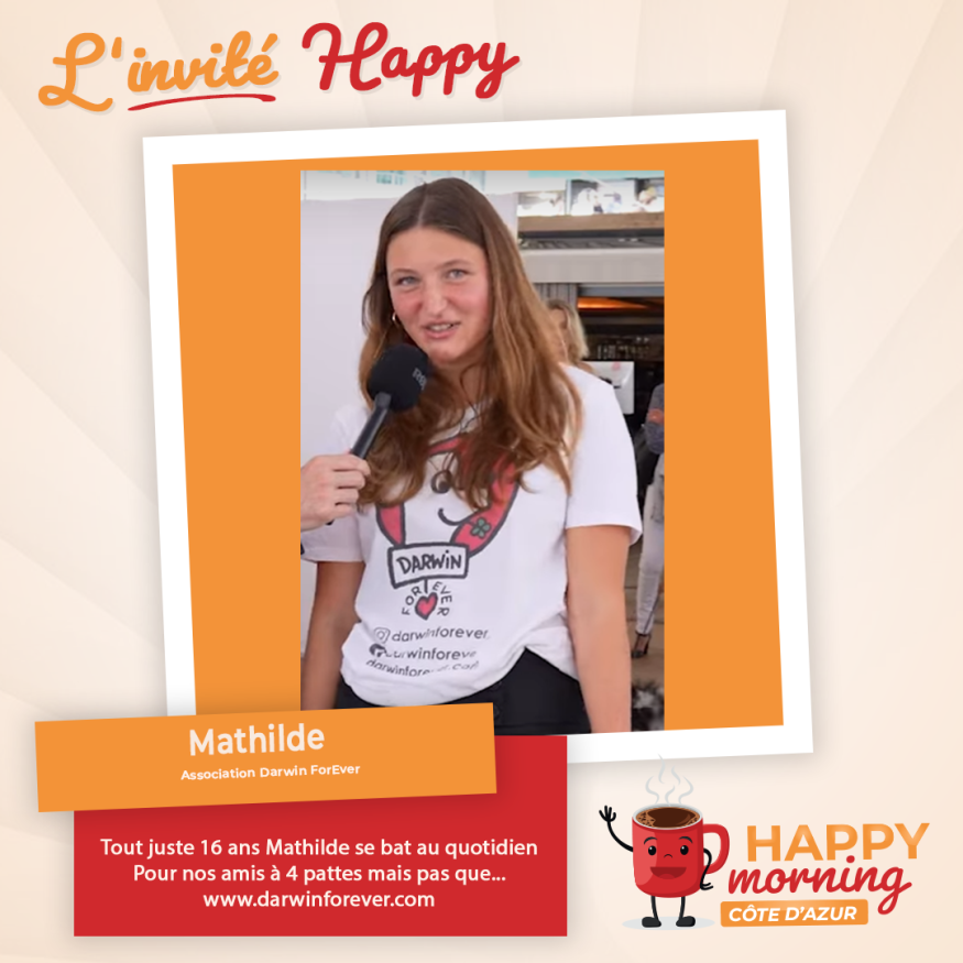 Dans l'émission happy morning Côte d'Azur, Loric reçoit Mathilde de l'Association Darwin Forever qui à pour but de sensibiliser le plus de monde sur la lutte animale et environnementale site : www.darwinforever.com . Présentation et questions / réponses sont au programme de cet interview.