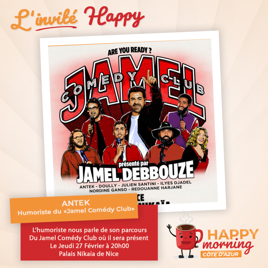 Dans l'émission happy morning Côte d'Azur, Loric reçoit l'Humoriste ANTEK du Jamel Comédy Club. Présentation et questions / réponses sont au programme de cet interview.