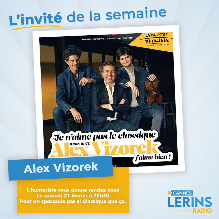 Dans l'émission l'invité de la semaine, Loric reçoit l'humoriste Alex Vizorek pour son spectacle "Je N'Aime Pas le Classique Mais Avec Alex Vizorek, J'aime Bien !" le samedi 21 février à 20h30 à la Palestre, Le Cannet. Il nous parle de son spectacle comment rendre accessible la musique classique à tous avec humour entouré de musiciens de talent Avec :