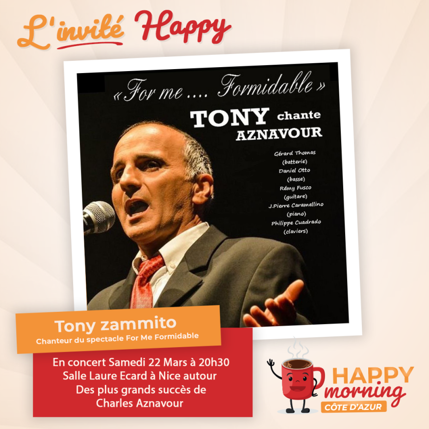 Dans l'émission happy morning Côte d'Azur, Loric reçoit l'artiste Tony Zammito chante Aznavour. Présentation et questions / réponses sont au programme de cet interview.