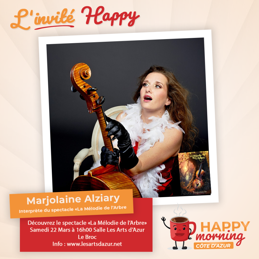 Dans l'émission happy morning Côte d'Azur, Loric reçoit l'artiste Marjolaine Alziaria "La Mélodie de l'Arbre". Présentation et questions / réponses sont au programme de cet interview.