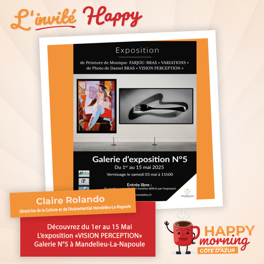 Dans l'émission happy morning Côte d'Azur, Loric reçoit Claire Rolando Directrice de La Culture et de l'événementiel à Mandelieu-La-Napoule. Présentation et questions / réponses sont au programme de cet interview.